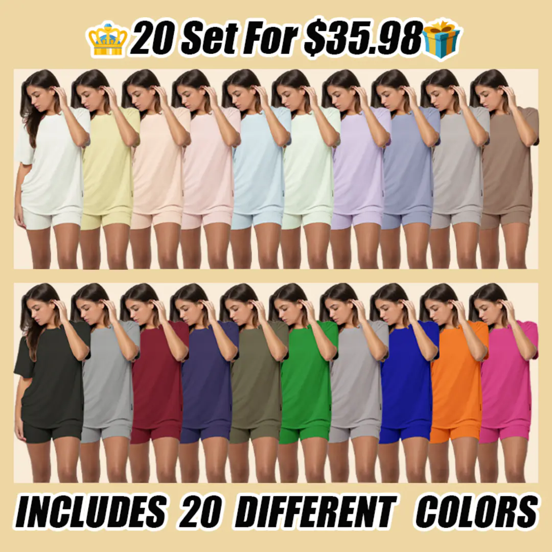 Women's Summer 2 Piece Outfits Casual Pullover Tee Shirts