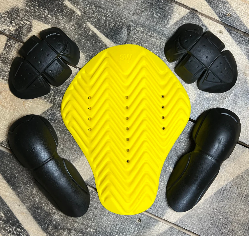 Armour - The garment includes SmoothWays impact protectors as standard. The shoulder protectors are SW-102-S-Type B, the elbow protectors are SW-101-E/K-Type A, and the back protector is SW-251-Yellow-Level1.