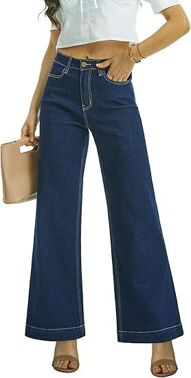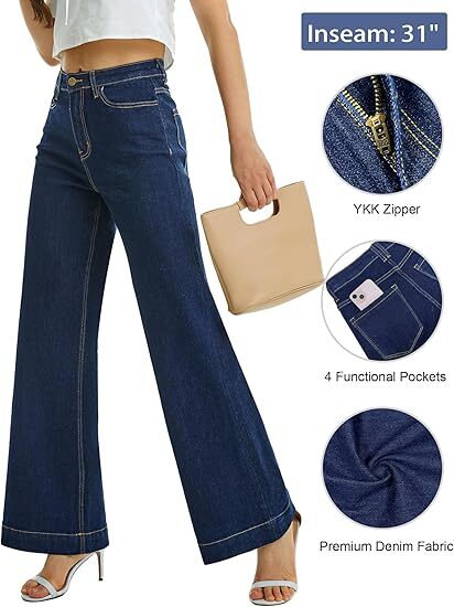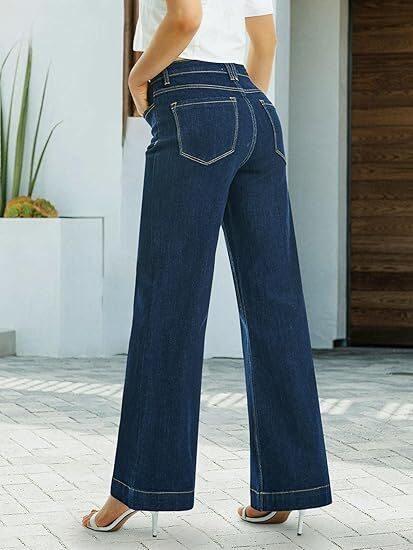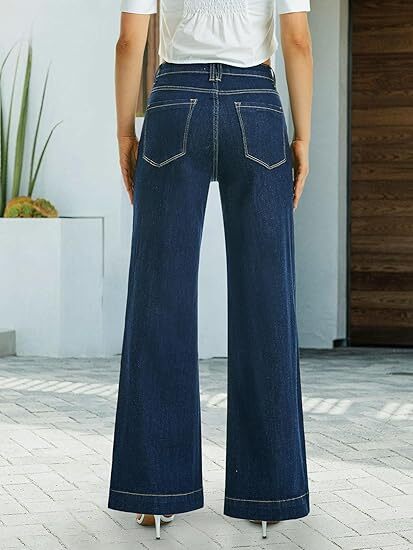 High Material --- These baggy dark blue wide leg flare jeans for women are made of 75% cotton, 23% polyester, 2% spandex which are stretchy and soft materials, flexible and breathable for all-day wear, and not easy to shrink. Loose fit makes you move with comfort throughout the day, and the wide legs show your long legs very well.
