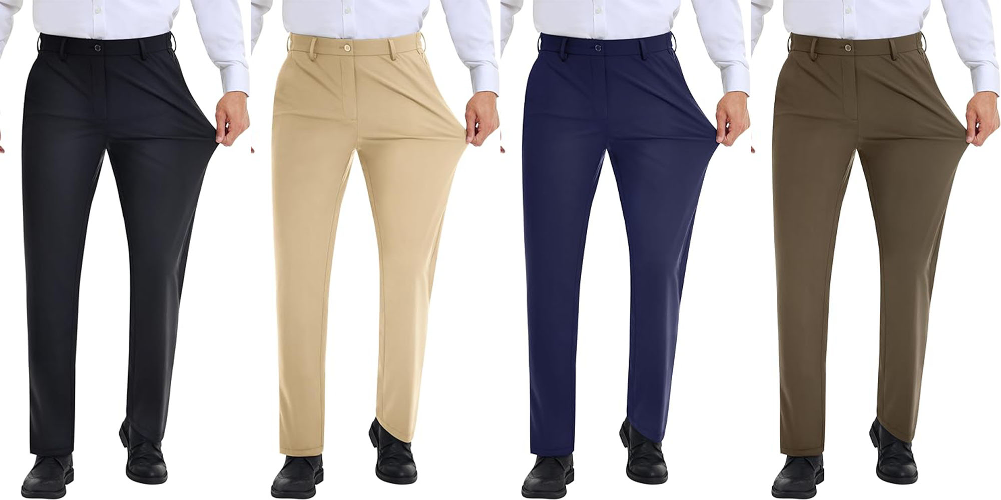 Men's dress pants with 4-way stretchy fabric provide comfort while maintaining a timeless look.These high-quality dress pants for men have a MAGIC STRETCHY POWER, that allows them to cover everything without being seen through and move