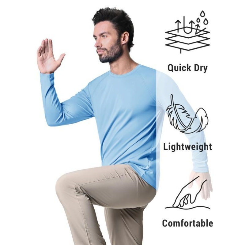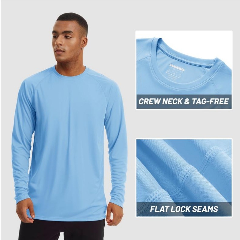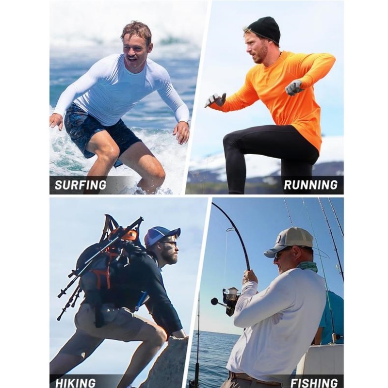 Bullet Points:·Materials: Polyester; Wrinkle-free, Quick Dry and Soft·UPF 50+: Excellent protection from the harmful effects of the Sun's UV Radiation·Quick Dry This men's long sleeve shirt features high performance wicking fabric that pulls moisture away from skin, breathes freely and dries quickly for active·Skin-Friendly: Flatlock seamlines; Raglan sleeves provide full range of motion; Classic FitMens Long Sleeve Shirts Sun Protection UPF 50+ Shirts for Daily Wear, Running, Hiking, Fishing, Gym, Surfing Perfect for: Running, Workout, Hiking, Camping, Fishing, Sailing, Surfing, Swimming