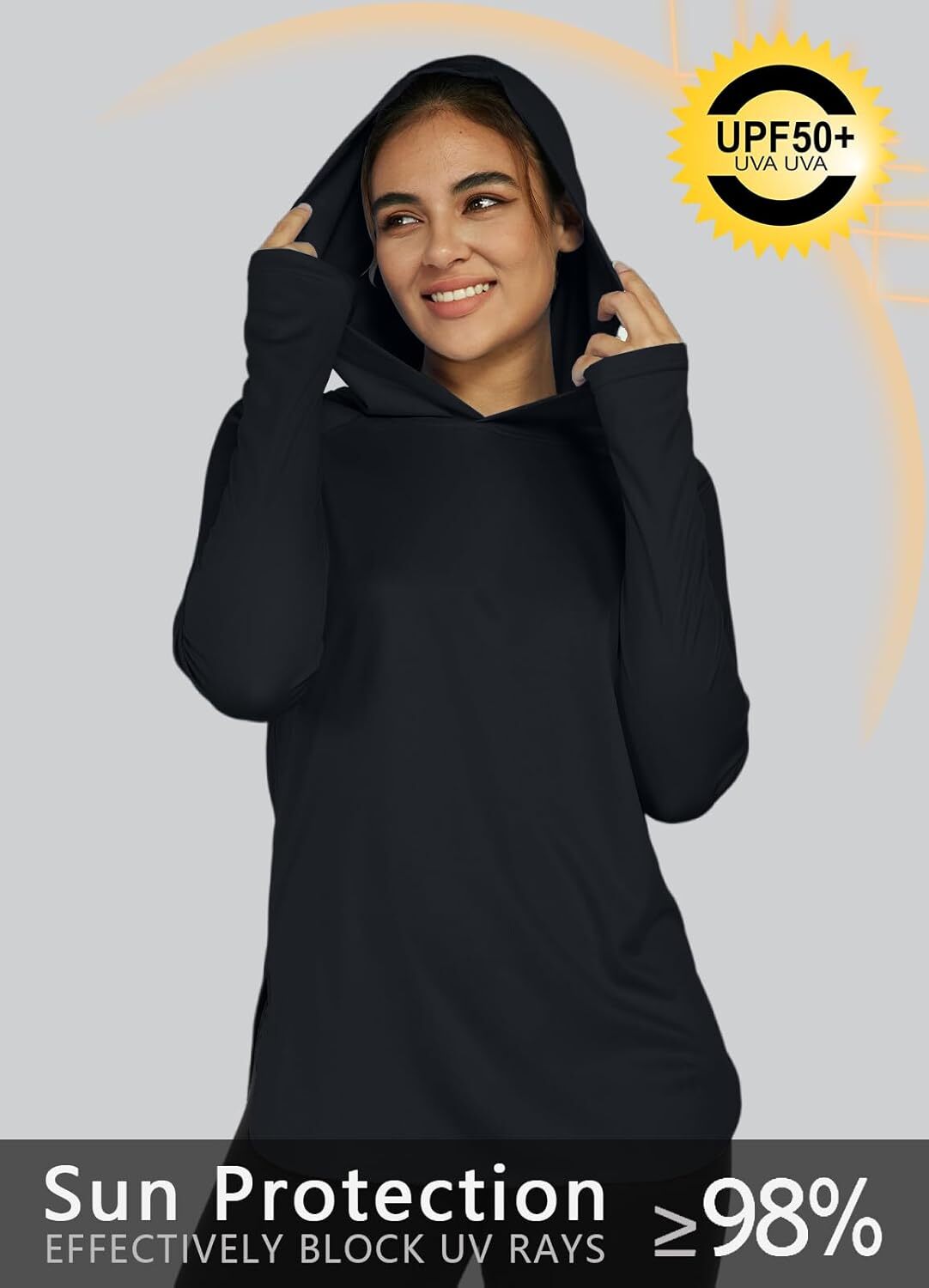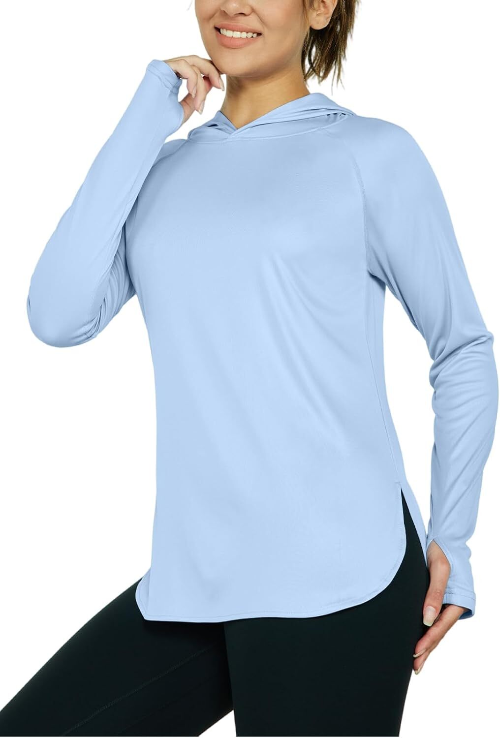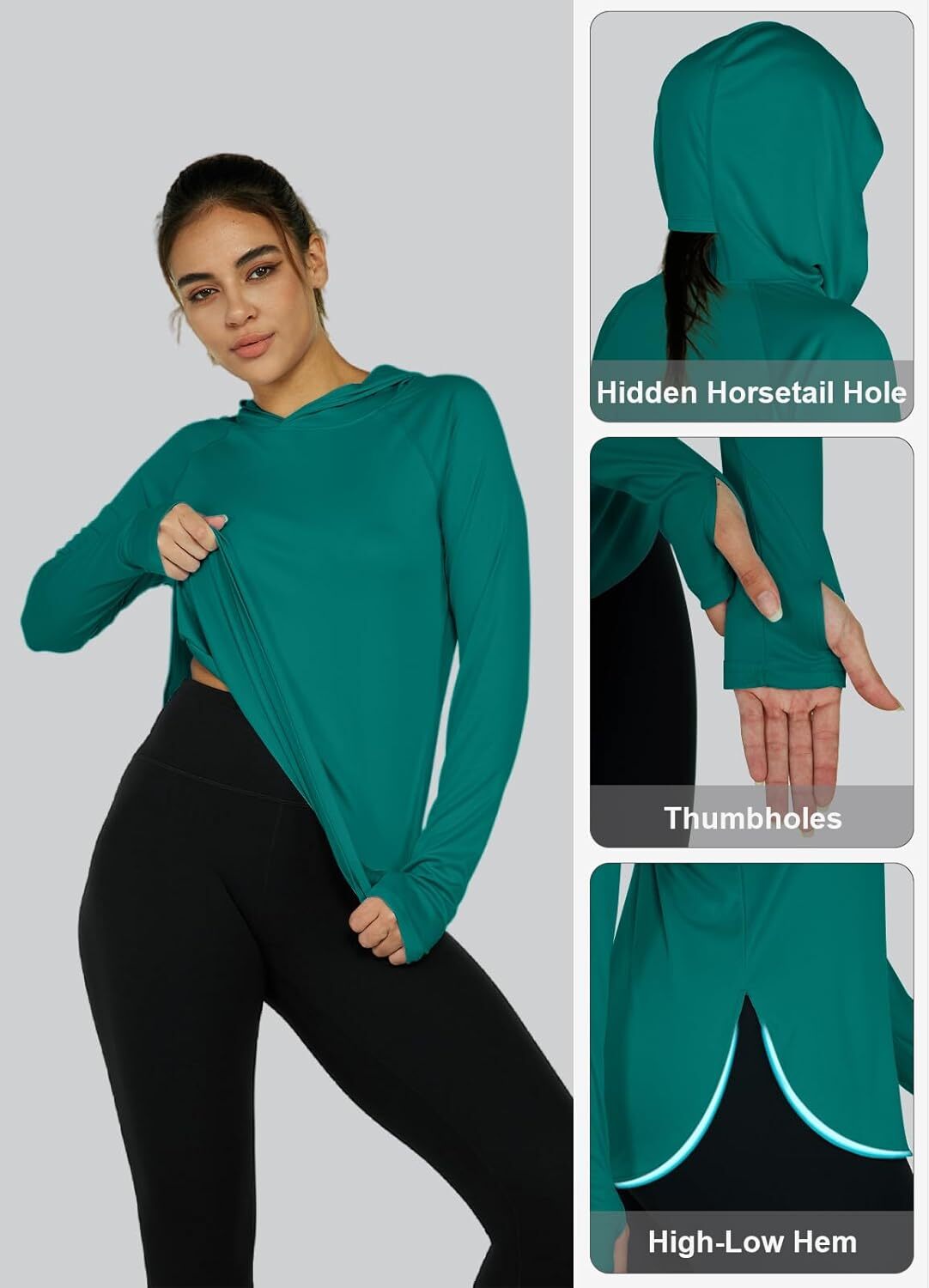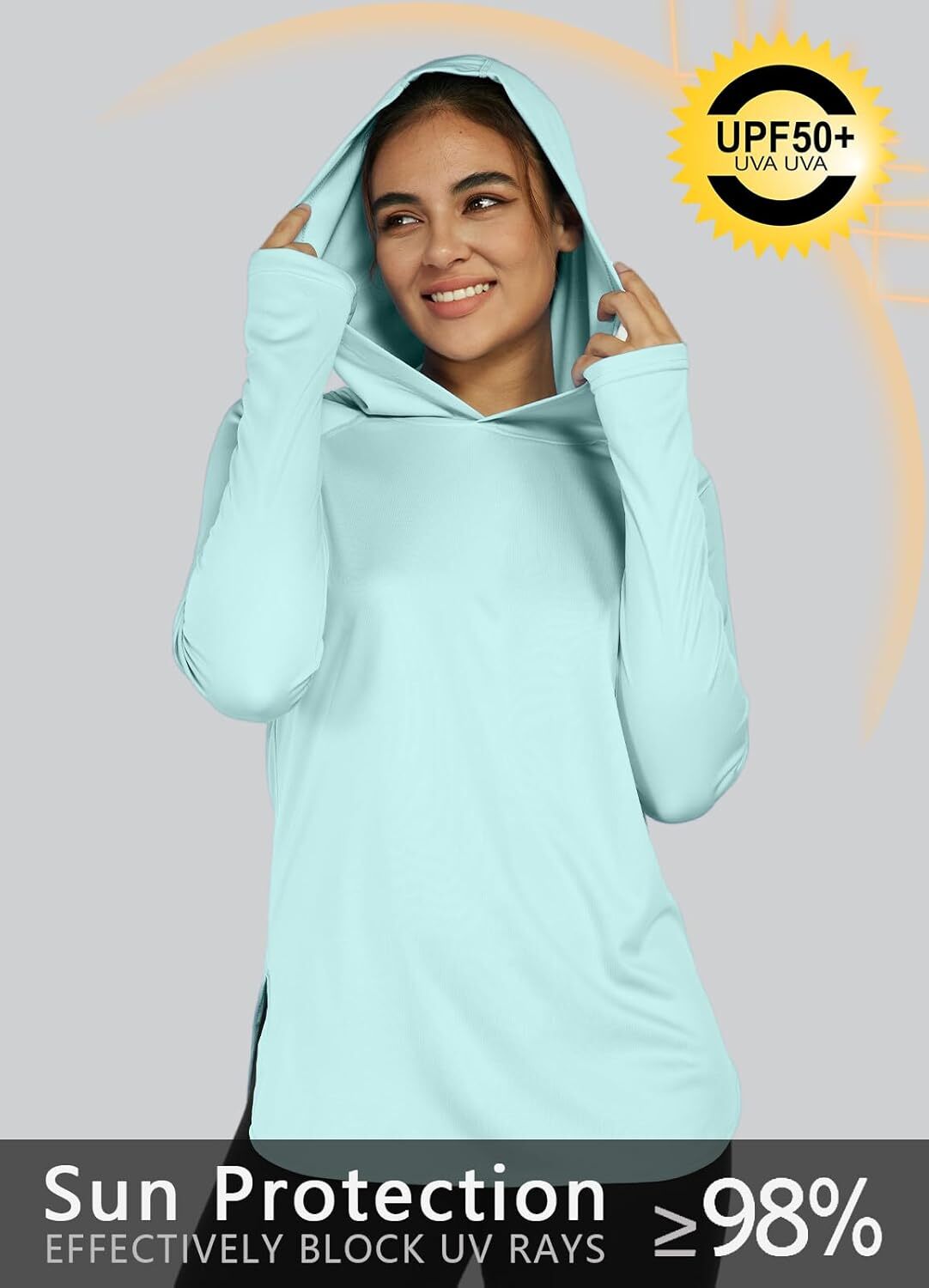 - [Hidden Horsetail Hole] Get extra sun protection with our sun shirts that come with a hood and thumb holes. Perfect for those who can't stand the heat or are too lazy for sunscreen.
