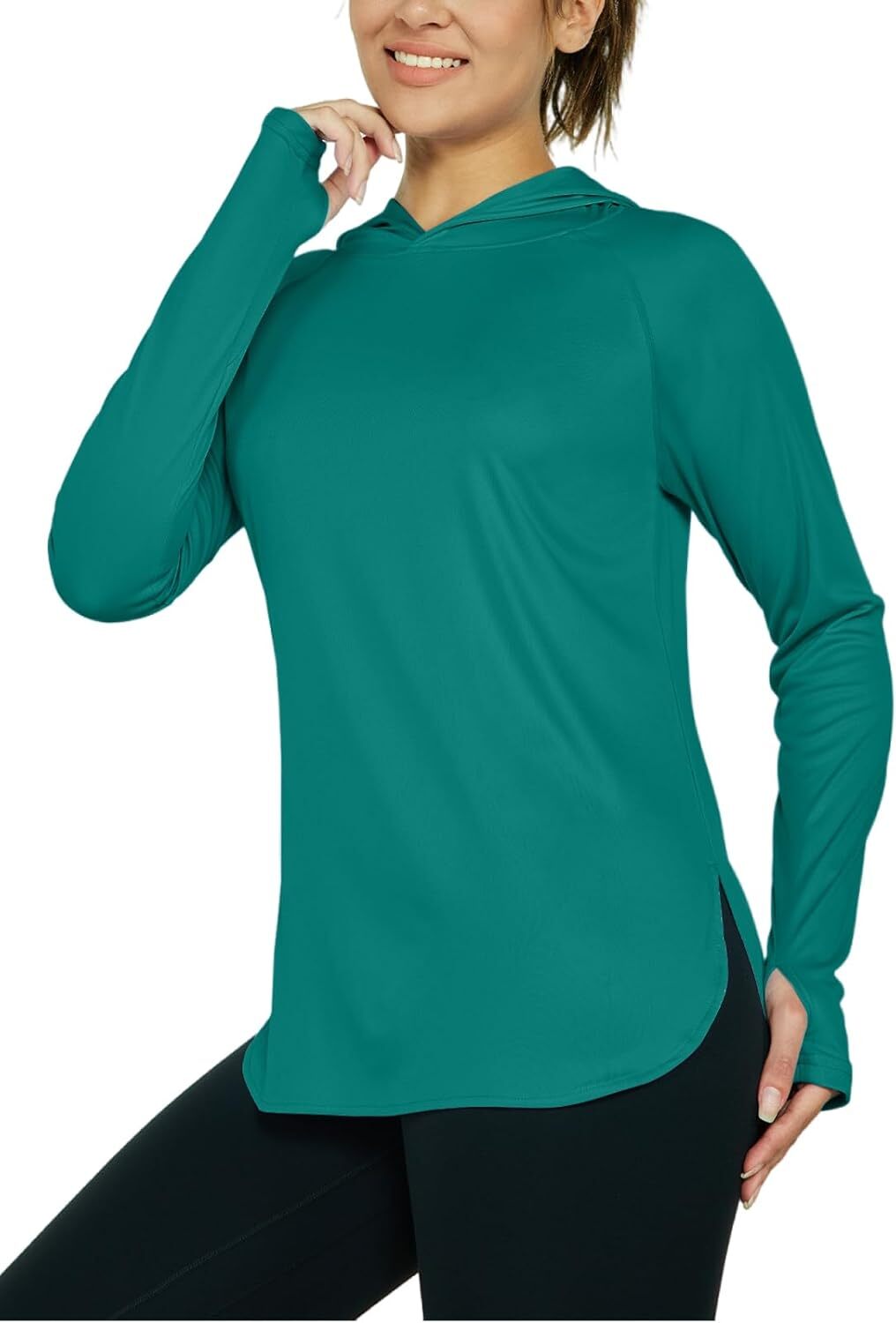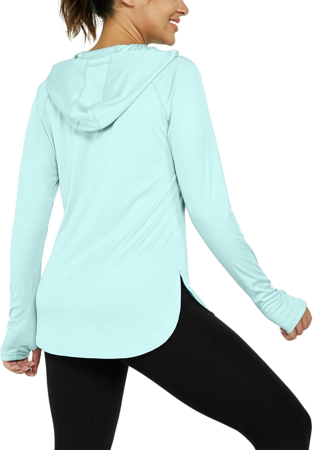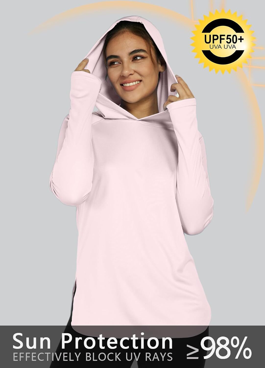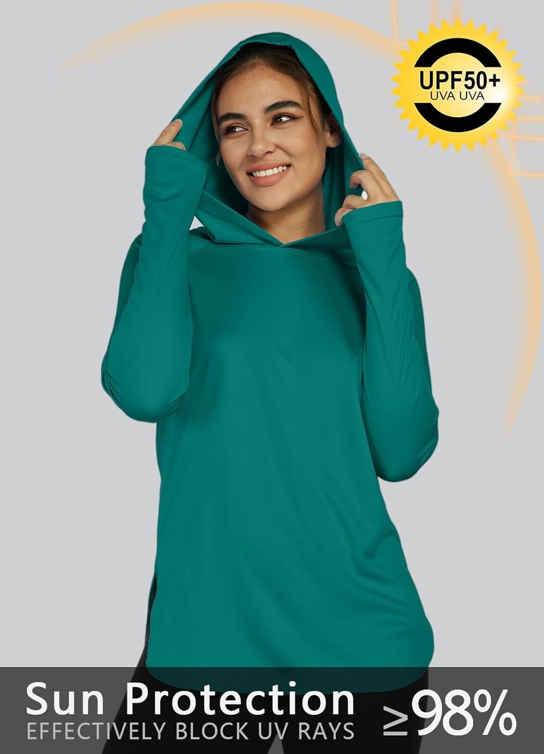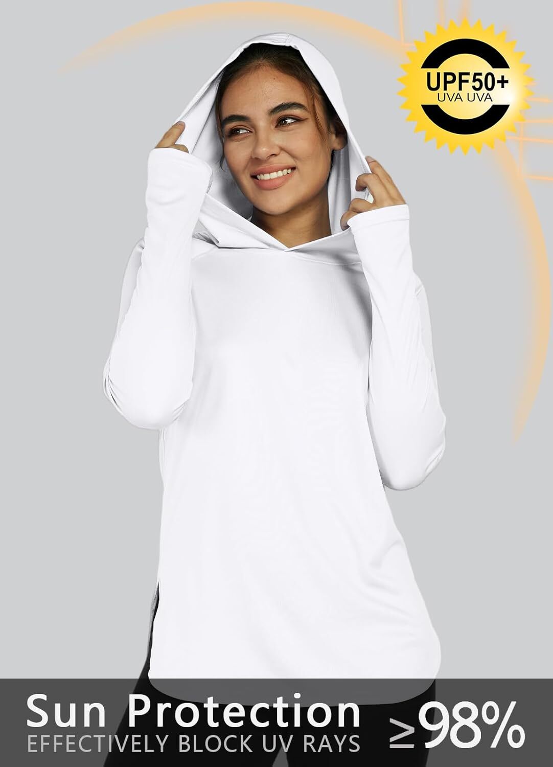 - [Hidden Horsetail Hole] Get extra sun protection with our sun shirts that come with a hood and thumb holes. Perfect for those who can't stand the heat or are too lazy for sunscreen.
