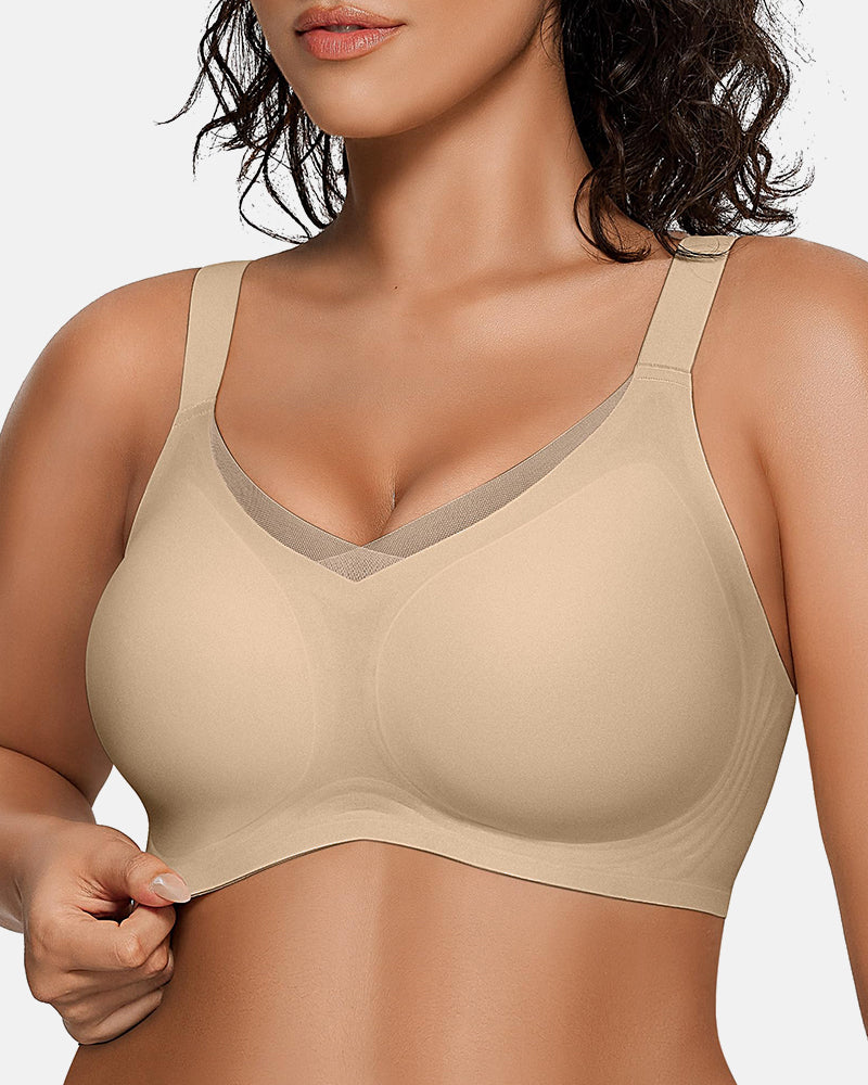Our wirefree bras feature a W-shaped Jelly Strip and Supportive molded cups around your breasts, giving a nice shape and adequate support for daily life. This comfort bra without underwire means no annoying wire stabbing you in the side, ensuring a buttery soft feeling all day long.
